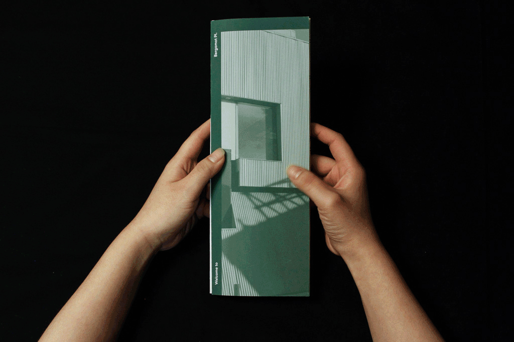 The logo is inspired by a blueprint (spatial plan view) of a space. The modular negative space of the logo mark implies an accessible, open-minded and flexible space.
